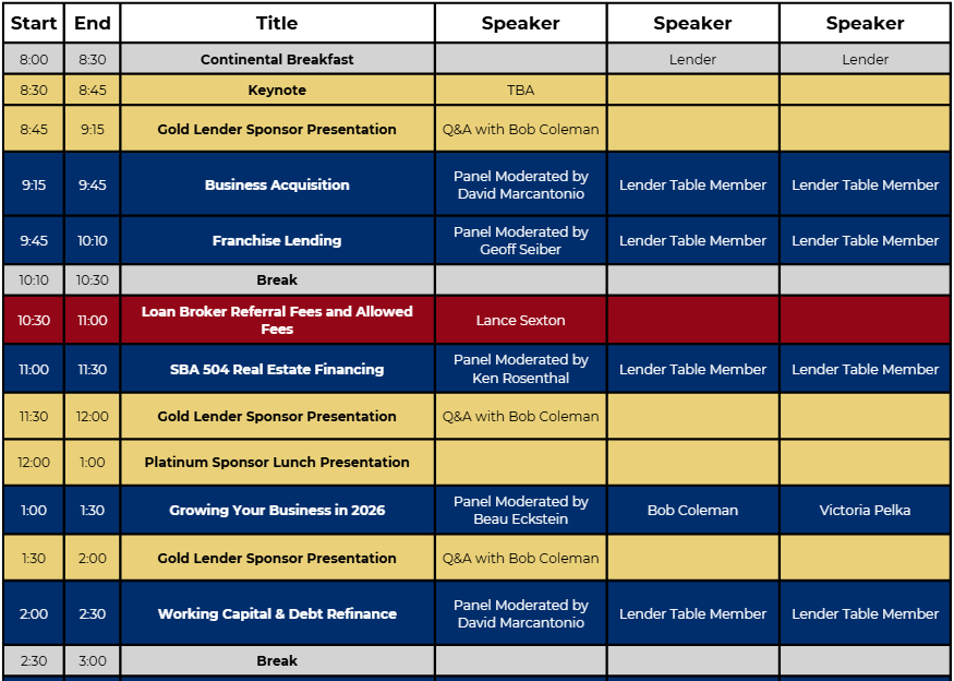 This is the first event of its kind—a dedicated forum built specifically for SBA loan brokers and the lenders who depend on them. It will be one day full focused entirely on how SBA deals are sourced, structured, approved, and funded in today’s market.